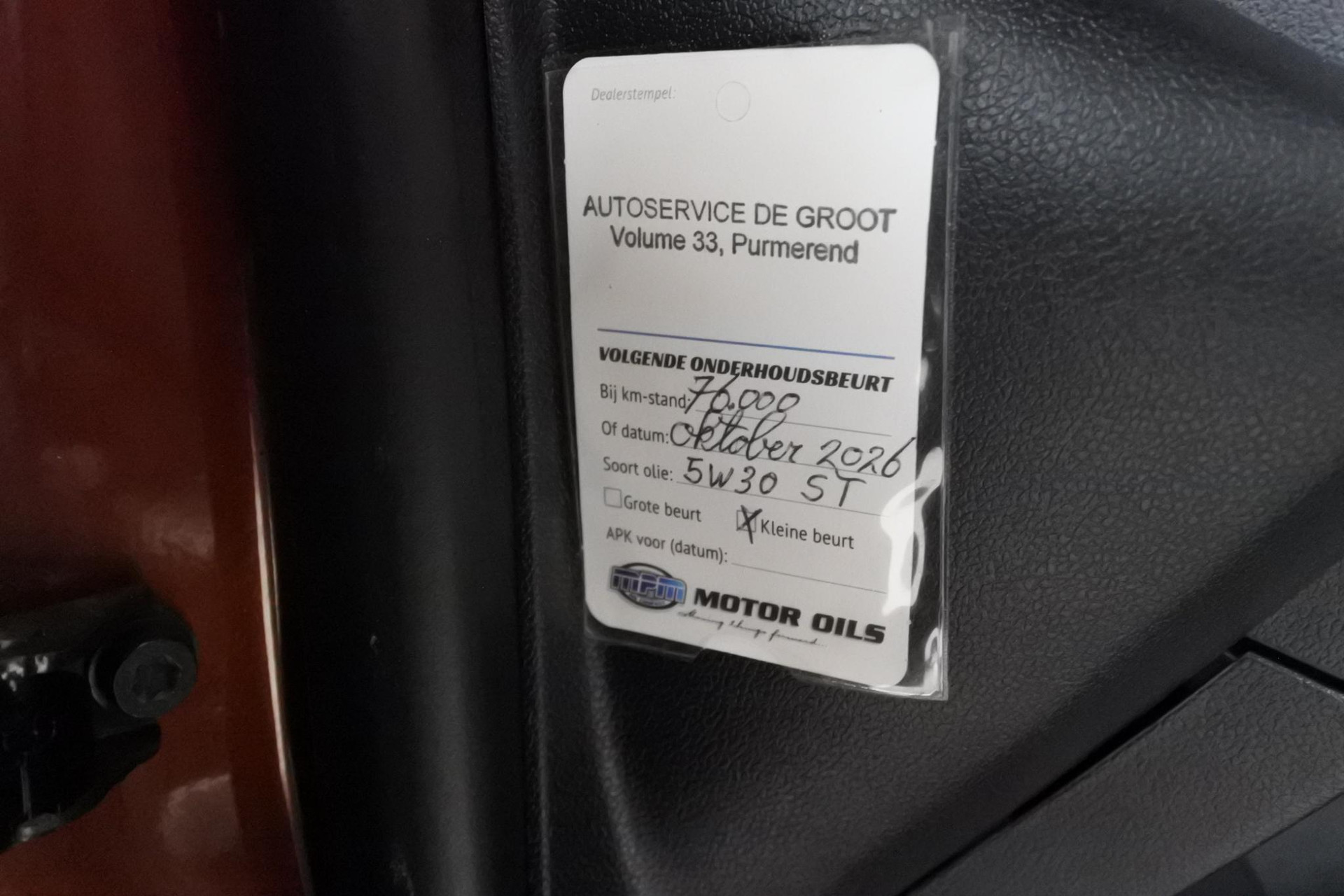 - Onderhoudsboekje (fysiek)